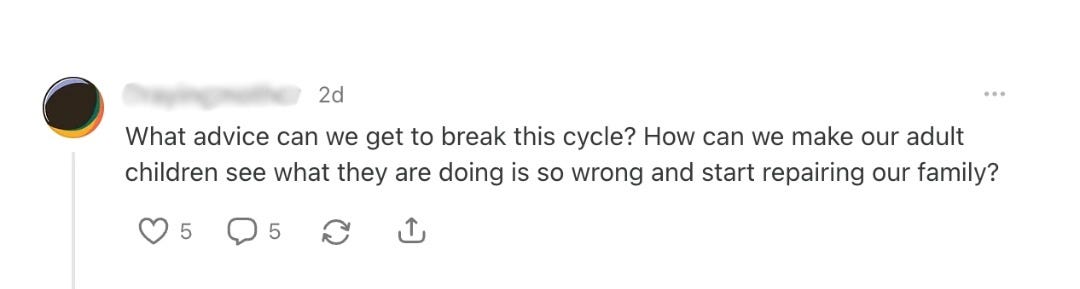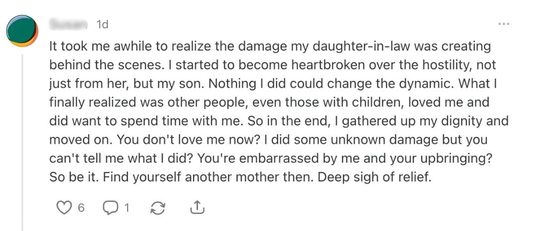 I recently came across an article on Substack written by a mother describing her experience of being cut off by her adult children. The piece was emotionally raw and clearly struck a nerve with readers. It wasn’t just rooted in grief, but in a strong sense of abandonment, personal erasure, and helplessness.